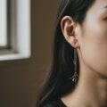 ダイヤモンドクォーツは両端が尖った結晶そのままの形が果実のようで、ころんとさり気ない存在感。透明度が高く輝きが強いので、揺れるたびきらりと光を反射します。繊細な小枝と華奢なチェーンが、耳をさり気なく飾ります。