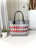 ★ツイード風のライン柄に、赤色やベージュをミックスした撥水素材のプラカゴトートになります。