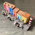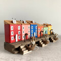 流木、ねじ・釘(赤錆加工)、ホワイトウッド(欧州スプルース、ドイツトウヒなど)、ステイン、ペンキ等で製作。ヤスリでダメージ感を演出しています。「潮騒とカモメの鳴き声、風の音」を感じていただければ幸いです。