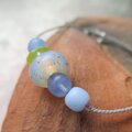 二本の紐をまとめるのは、透明なヴェネチアン・シードビーズ。