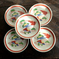 【アウトレット品】赤で可愛い。伊万里 花文印判色絵小皿5客セット。骨董・antiques 古道具 古民家 大正期