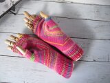ドイツのブランド Opal Memories 11003 Gl Ck Auf Dem Ponyhof で編んだハンドウォーマーです。