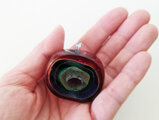 ガラスと銀箔のペンダント(みどり色)緑の半月のような美しさ。見入ってしまいます。
