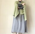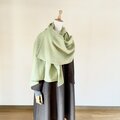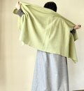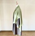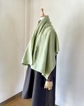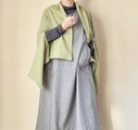 手の通し口がありますので、手首だけ通して広げて肩にはおったり、肘まで通して着るとベストのようになりますし、たっぷり二重に巻いて首周りにボリュームを持たせたりと 様々な着方が楽しめる おしゃれな大判のストールです。