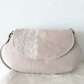 少しざっくりした生地感が素敵なベージュリネンにアンティークレース、イギリス製のチュールレースをのせたフラップショルダーバッグです。