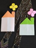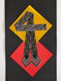 クリーム色をベースに、幾何学的な花を描いています。