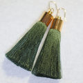 シルクタッセルのゴールドチタンピアス(オリーブ)