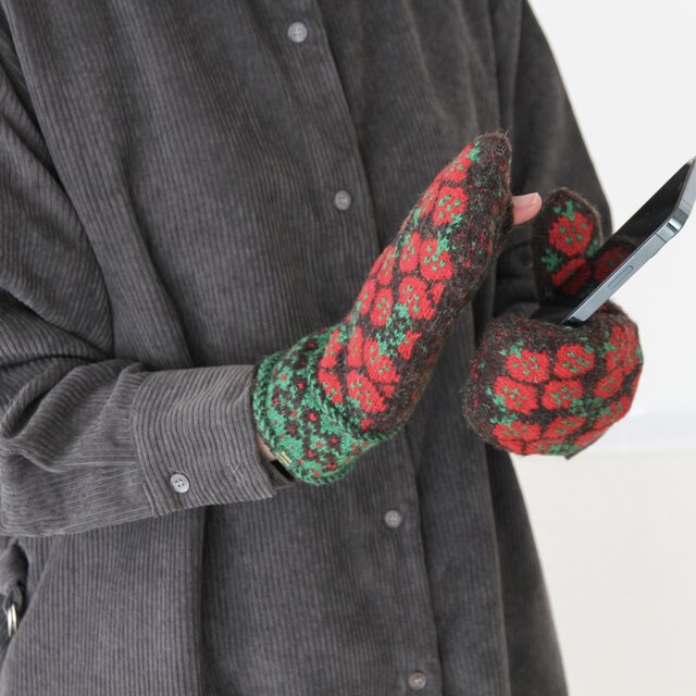 手編みは形やデザインは自由に再現できます。基本的な形はラトビア地方の三角形ミトンを参考にしており、温かさを保ちます。独自のデザインが可能で、スマホ使用時の便利な機能も追加できます。