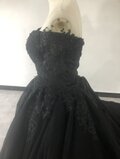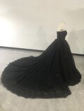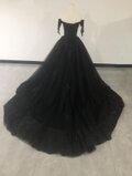 豪華! ブラック オフショルダー 魅惑の花レース トレーン 前撮り チュールスカート ビスチェドレス