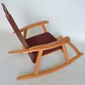 画像の品は主材に欅、背部材にウォールナットの高級材を使った大ぶりのロッキングチェアです。座面と背もたれは硬質ウレタンを組み込み、小柄な人から大柄な人まで万人にフィットします。ロッカー部にオットマン(足のせ)を組み込み、気持ちよく揺れます。