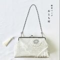 プラチナ銀箔二重織のとても華やかかつ上品な帯からお作りしましたがま口バッグです。