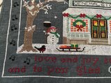 麻生地にクリスマス図案を刺したマットになります。