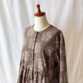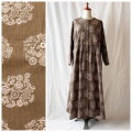 レディのためのクルドレイユワンピース(長袖):120cm丈(花紋コーデュロイ:ベーッゼルナッツブラウン)