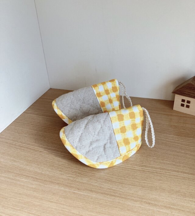 キルティングの鍋つかみ2つセット(イエローチェック)