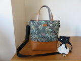 リバティ ワイルドフラワーズと茶色の合皮で2WAYの縦長トートバッグを作りました。