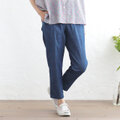 脚すっきり、やわらかデニム テーパードパンツ オールシーズンOK(インディゴ) PT03