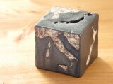 伊豆で自ら掘ってきた粘土を土練りしないで薄く叩いて生地に貼り付け、土を掘ったときの黒い部分白い部分がそのまま自然な模様を焼き出しています。土本来の模様が浮き出ています。その伊豆土を陶器のアクセントとしてデザインし、日々創作しています。