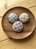 淡くてはかない感じの好きな色を集めて水玉模様のブローチを作りました。