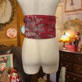 【 和洋折衷 レトロ 古着 アンティーク 名古屋帯 着物 和装 リメイクベルト ウエストマーク ハンドメイド 赤紫/レッドパープル系 OB-8】