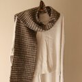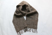 この作品も、英国クラシックな雰囲気を残し、原毛そのままの色で未染色のグレー系、茶系の2頭を使って千鳥格子で手織りしました。羊の色と風合いをナチュラルに感じていただけるマフラーです。