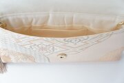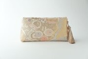 本金箔二重織 花々・秋草・古典柄模様のゴールドのシルク帯で製作した2Wayリメイククラッチ&ハンドバッグです。