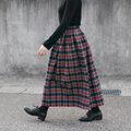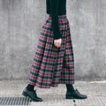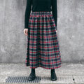 【即納】タータンチェックのロングスカート( ネイビー × レッド )上品な大人の色合い 紺 チェック 起毛