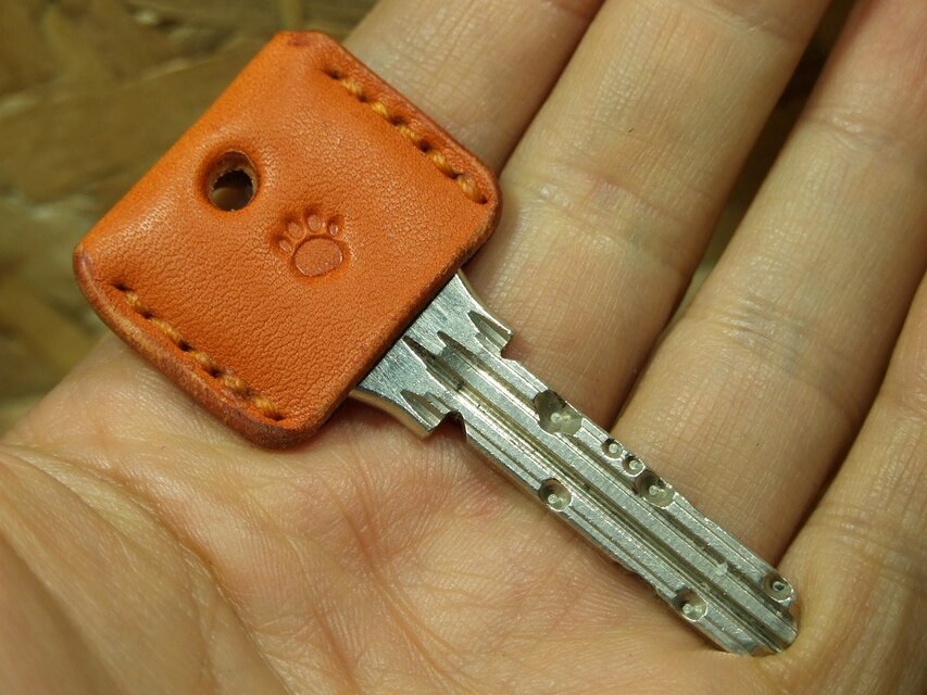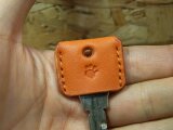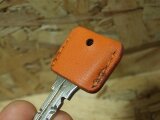 栃木レザーヌメのオレンジ1.4ミリ厚で作ったキーカバーです。