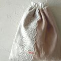 アンティークのレースやリネンをパッチワークした巾着ポーチです。