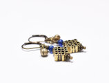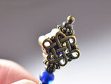 真鍮のエンドレスノットとブルーアンティークビーズ、民族鈴を繋いだピアスです。
