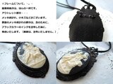 カメオ(ビクトリア朝フラワーレジンカメオ/カラー:ブラック×ホワイト/サイズ約40×30mm)、2WAYタイプ:ペンダントセッティング(亜鉛合金金属/鉛フリー、ニッケルフリー/カラー:ブラック)、スエード調合皮コード(カラー:ブラック/平線約3×2㎜/約1ⅿ)ジェムストーンエッセンス(Heaven&Earth社製エネルギー強化剤☆基本的にはシナジー12でお手入れいたします。)