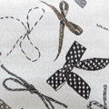 落ち着いたダークブラウンのリボンが散りばめられた生地に、