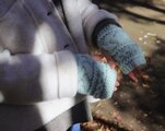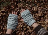 手編みで やわらかな風合いが とっても 素敵! 美しく丁寧に編まれ 軽くてふんわり 包んで くれ 心が ほっこりするよう。 ハンドウォーマーは 白いベビーアルパカの 毛糸を 綺麗な網目模様で 美しく編まれている。