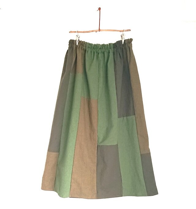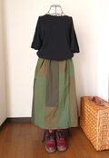 そんな3色の布をパッチワークしたスカートは季節を選ばずお使いいただけるアイテムです。