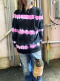 タイダイ染め スウェット トレーナー XXLサイズ ブラック×ピンク ボーダーダイ HD20-64