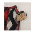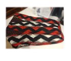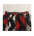 赤黒白のジオメトリック柄と細かい鱗風柄の2種類の銘仙を使って、