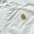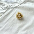 中央にはうつくしい照り方をするパールビーズを四つ。黄色味が強いです。まわりには小さな淡水パールをつけたちいさなブローチです。