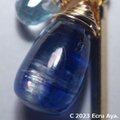 この仔に合わせたのは、同じように一粒手元に残しておいた、宝石質スカイブルートパーズのドロップブリオレットカットです。