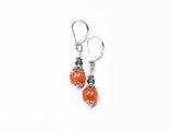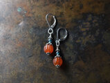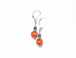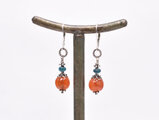 ヴィンテージ蜜柑型カーネリアンとインディゴブルービーズのピアス