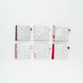 赤いリボンをつけて、フィンランドのヴィンテージ生地を用いてつくったケースに入れてお届けします。