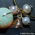 この仔に合わせたのは、同じように一粒手元に残しておいた、宝石質エチオピア産プレシャスオパールAAAのロンデルです。