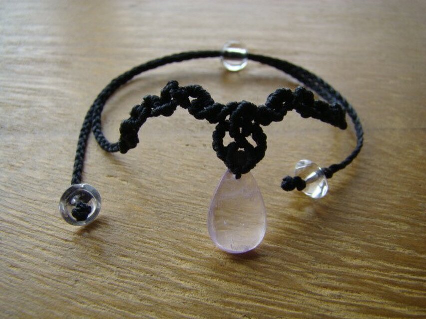 天然石(パワーストーン) クンツァイトをロウビキ紐を使ってマクラメ編みしたブレスレットです。