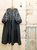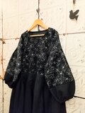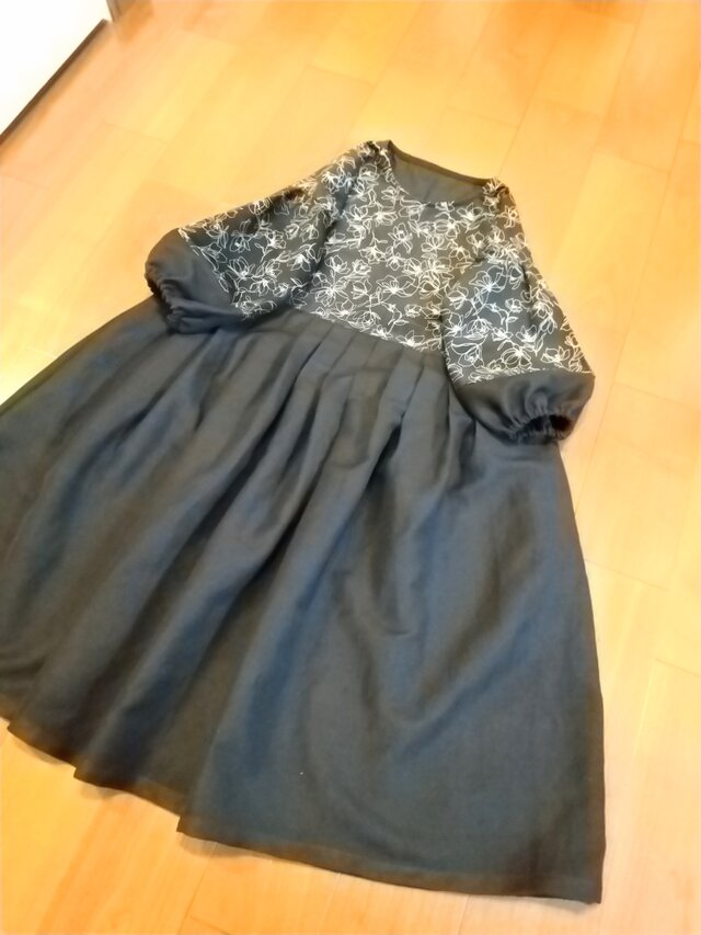 コットンウールのフラワー柄切り替えワンピース