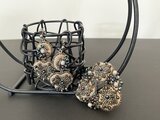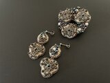 和墨染ビーズでスミレの刺繍をして、涙型のビーズを散りばめたピアスにしました