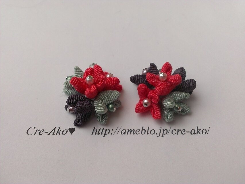 ピアス「一越ちりめんの小さなお花たち」よりも一回り大きめのお花たちです。