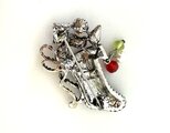 ビンテージのシックな色合いのエナメルのクリスマスブーツに わくわくするようなピンクのラインストーンのプレゼントを詰め込んだ とても上品で綺麗なピンブローチです。