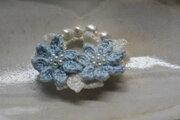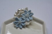 ブルーのお花の花芯にはパールビーズを縫い止めています。