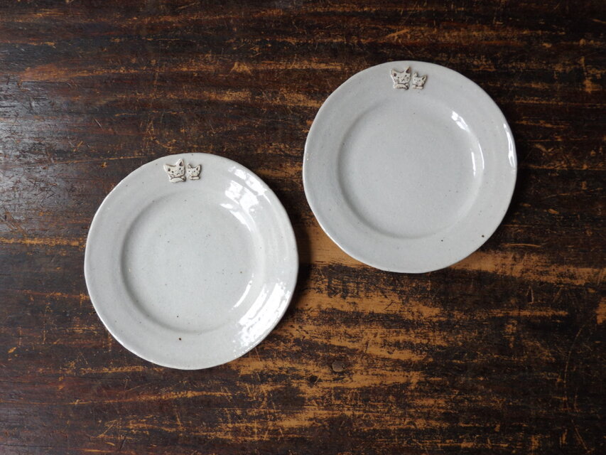 ねこのレリーフがくっついた5寸皿です。
