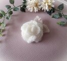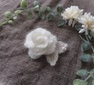 オフホワイトのモヘア糸で編んだローズブローチです。