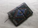 パスポートサイズトラベラーズノートカバー 牛革、刻印&拭き染め カードポケット付き