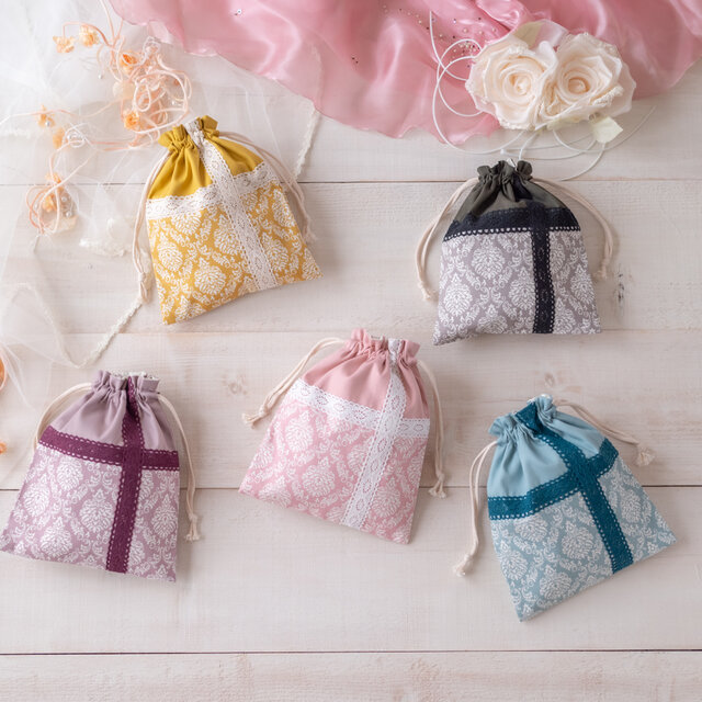 小学校高学年まで使える、上品でかわいらしい巾着です。